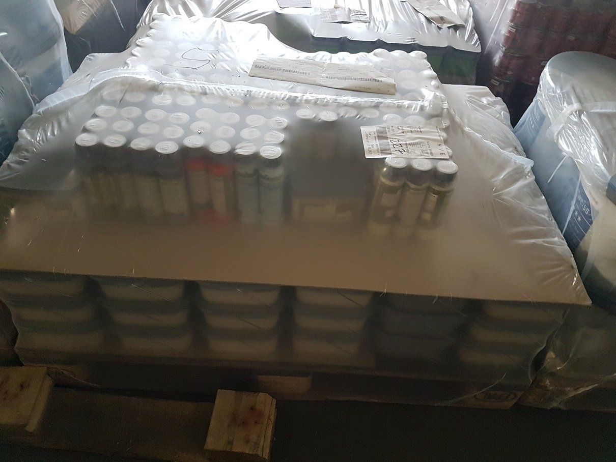 Zur Verfügung stehen zur Zeit ca. 500 Tonnen Farben und Lacke ab Hersteller.Dieser Posten besteht aus:bunten und weißen Wandfarben für innen und außen, verschiedene Lacke wie zum Beispiel: Bunt Lacke, Metallschutz sowieHolzschutz Lasuren in verschiedenen Farbtönen.Jede Palette ist hochgepackt, das Paletten Gewicht beträgt ca.900 KG .